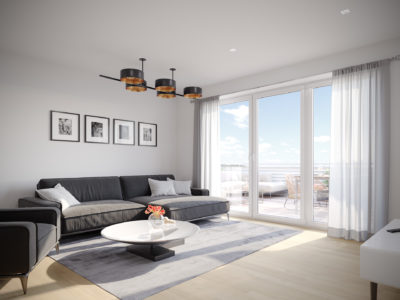 Genießen Sie das moderne großzügige Raumgefühl der lichtdurchfluteten Wohnungen mit kombinieren Wohn-/ Essbereich und offener Küche.